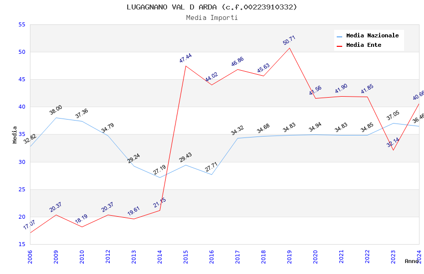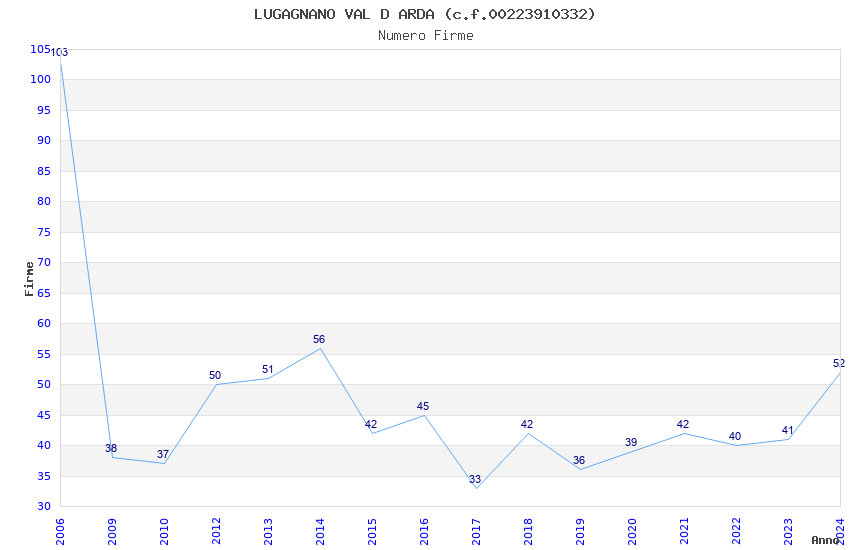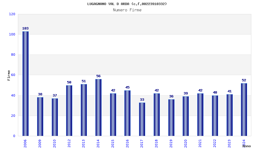 | Anno | Firme | Importi | Media | Naz. | Reg. | Prov. | Comu. |