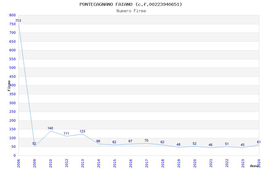 | Anno | Firme | Importi | Media | Naz. | Reg. | Prov. | Comu. |