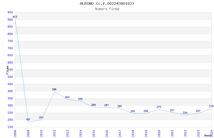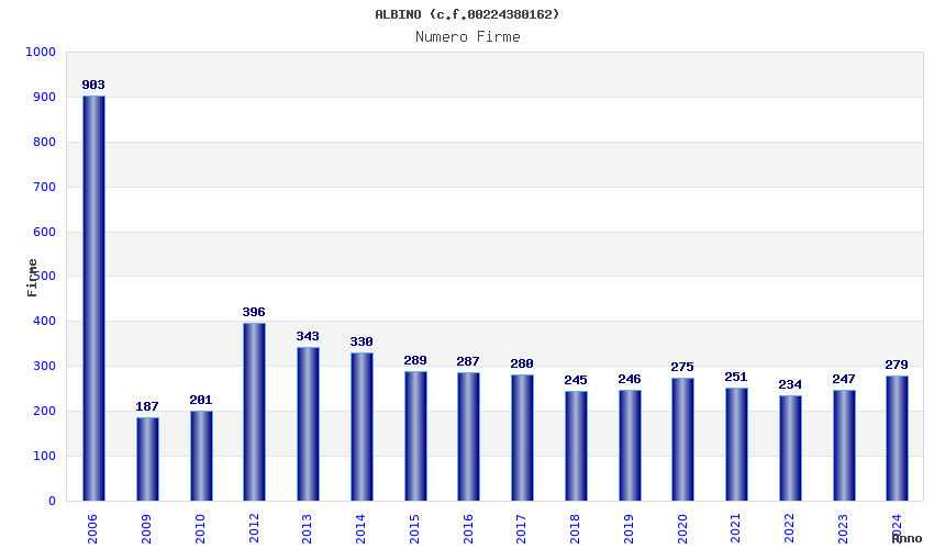| Anno | Firme | Importi | Media | Naz. | Reg. | Prov. | Comu. |