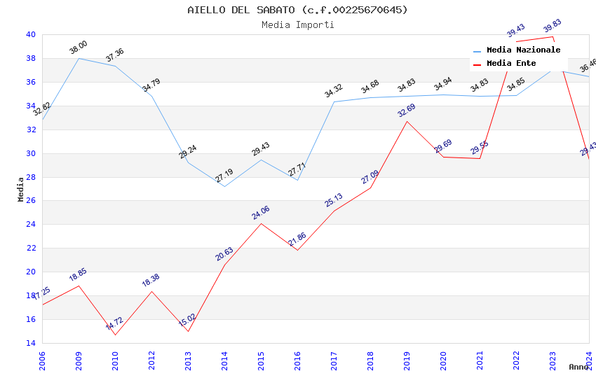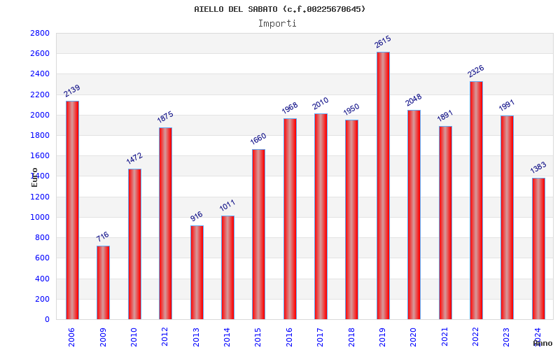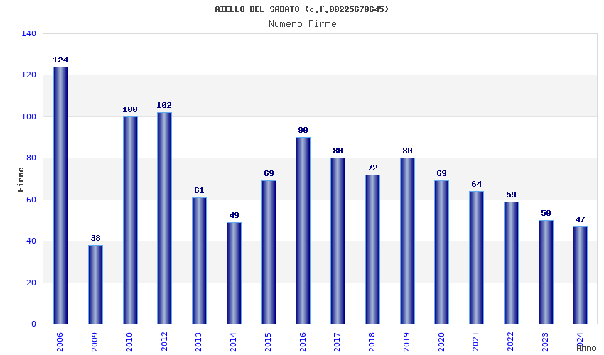 | Anno | Firme | Importi | Media | Naz. | Reg. | Prov. | Comu. |