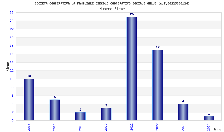 | Anno | Firme | Importi | Media | Naz. | Reg. | Prov. | Comu. |