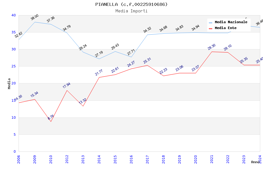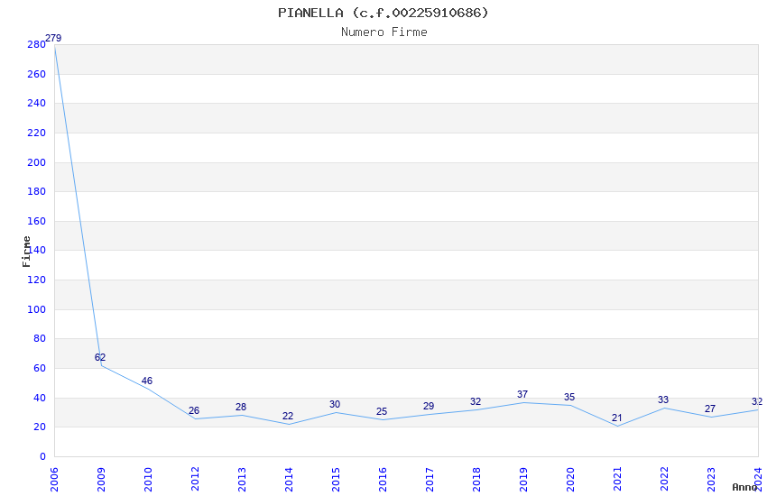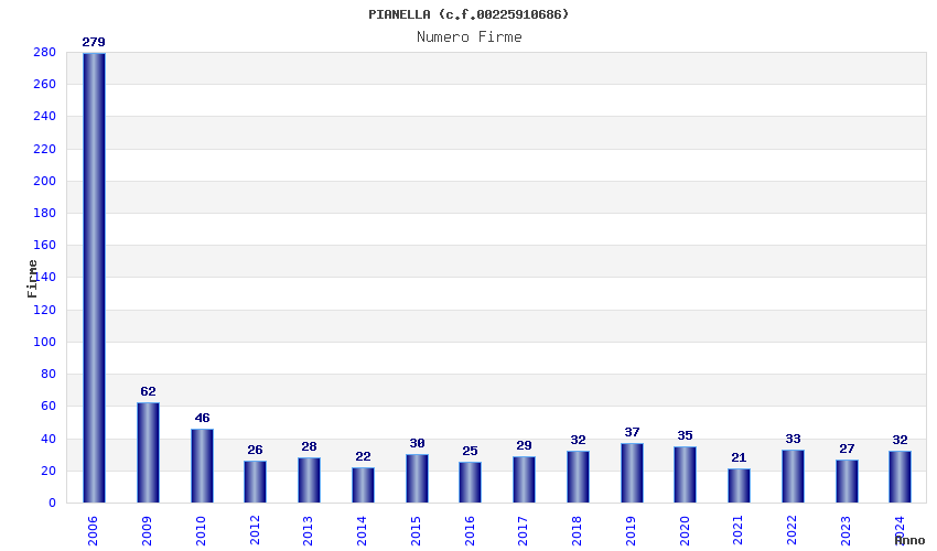 | Anno | Firme | Importi | Media | Naz. | Reg. | Prov. | Comu. |