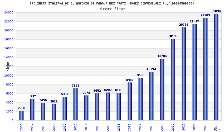 Anno Firme Importi Media Naz. Reg. Prov. Comu.