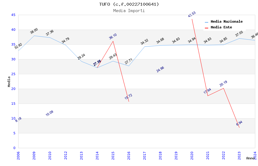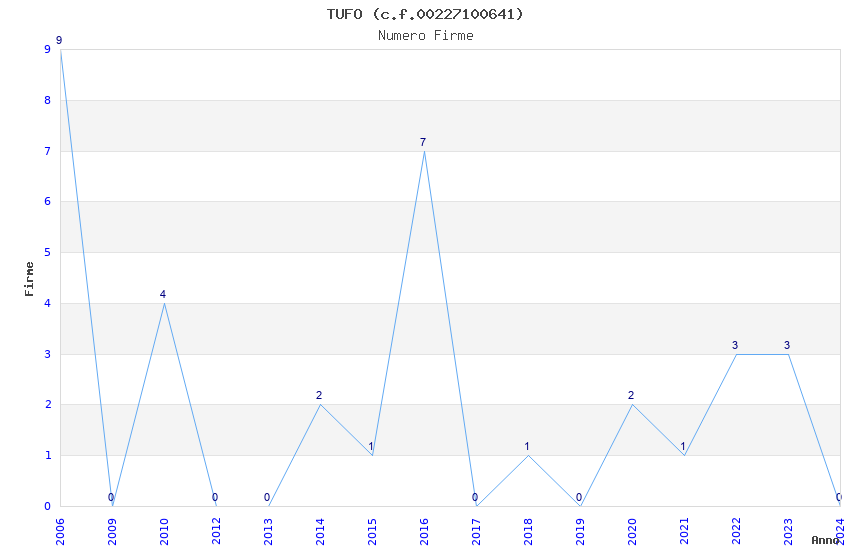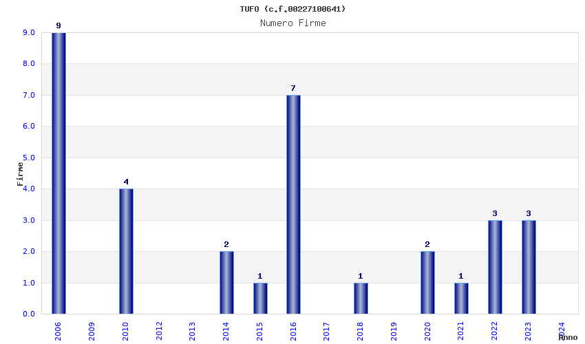 | Anno | Firme | Importi | Media | Naz. | Reg. | Prov. | Comu. |