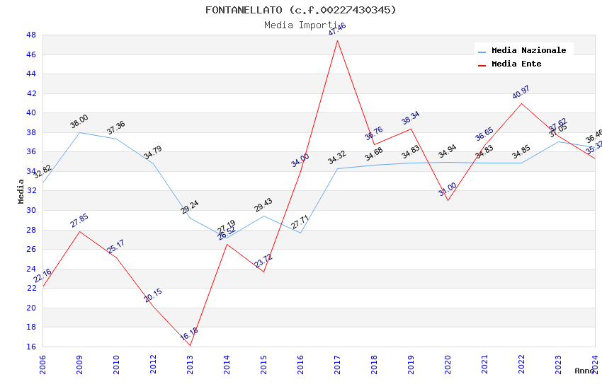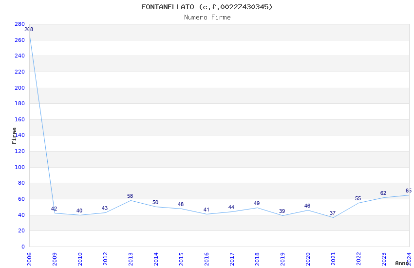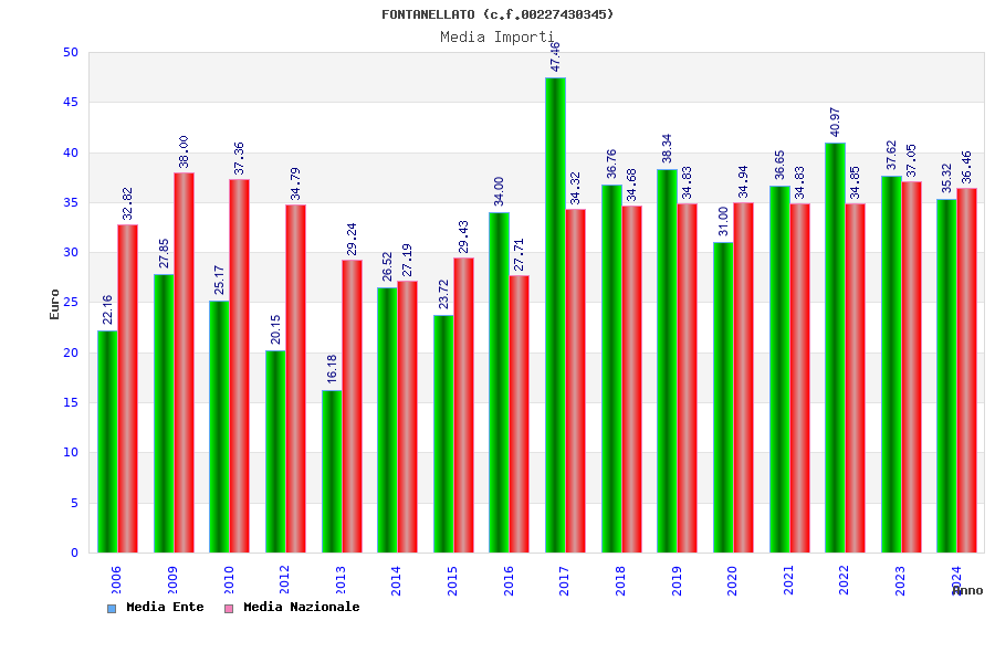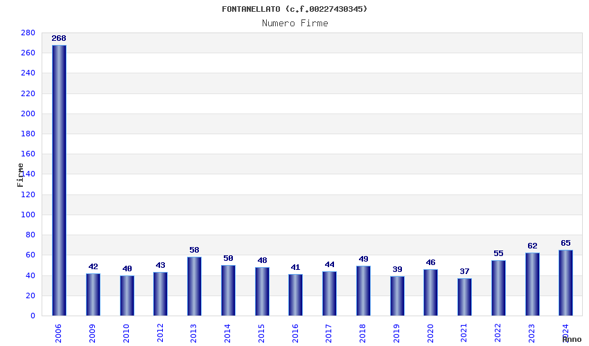 | Anno | Firme | Importi | Media | Naz. | Reg. | Prov. | Comu. |