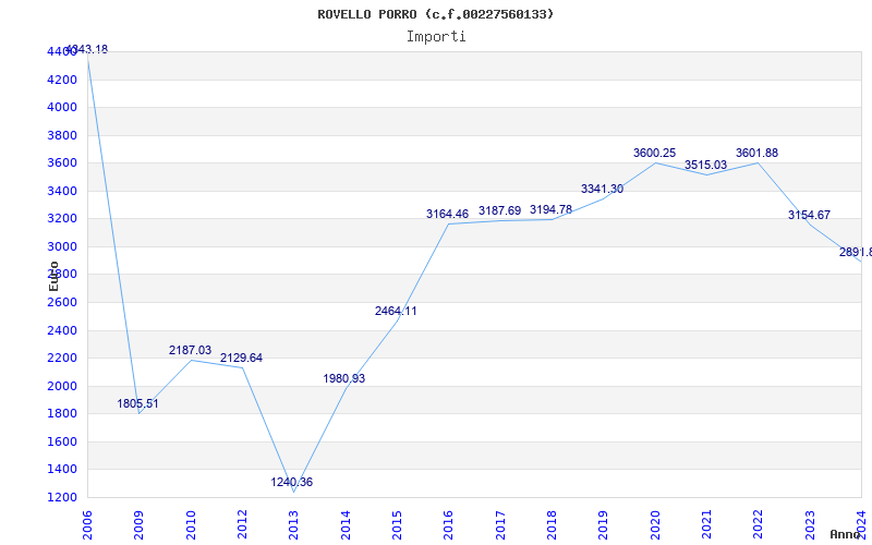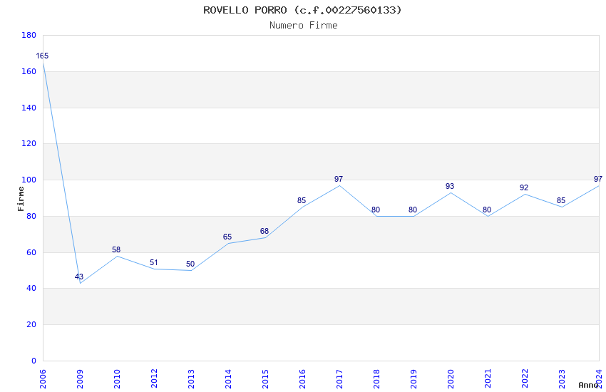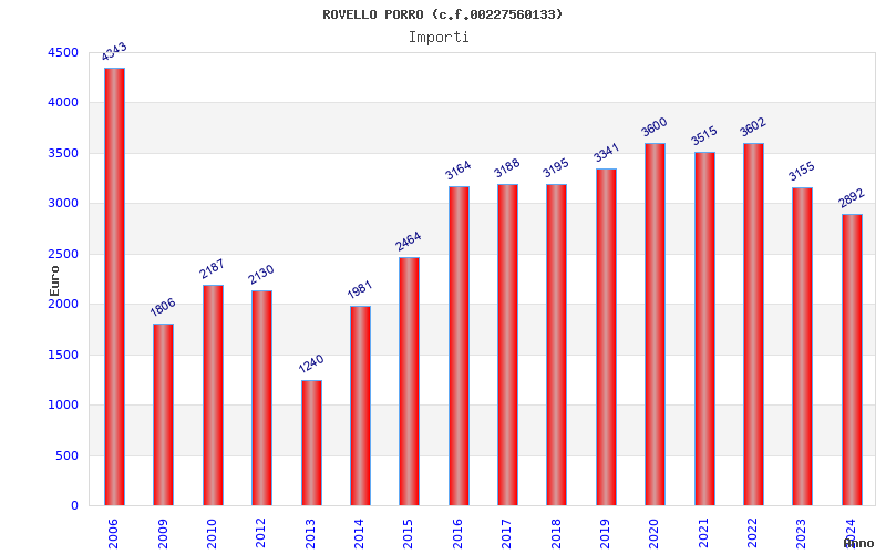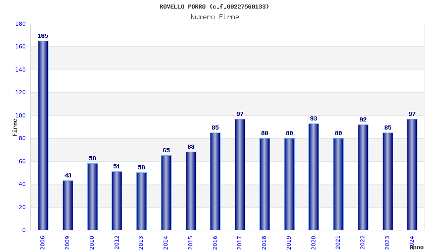 | Anno | Firme | Importi | Media | Naz. | Reg. | Prov. | Comu. |