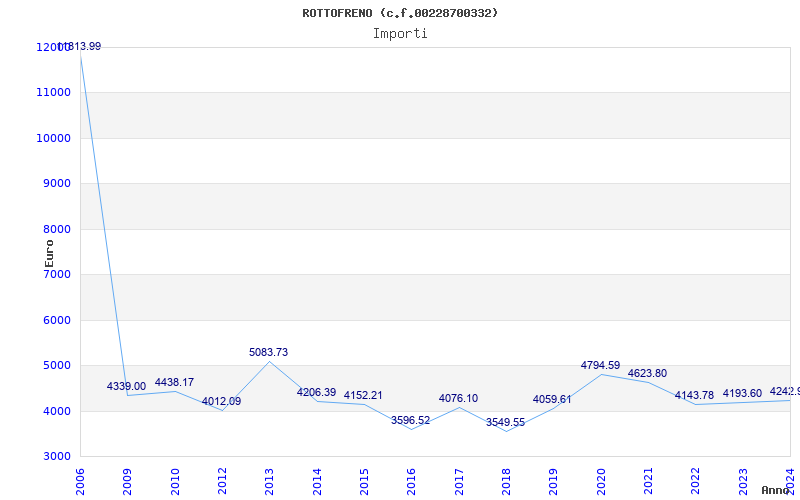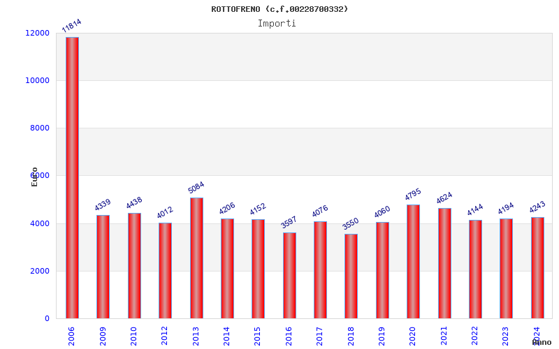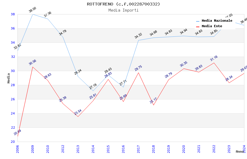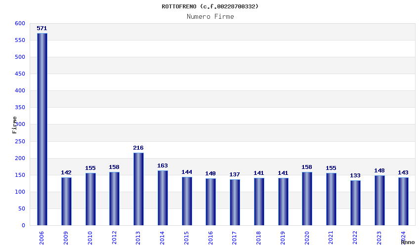 | Anno | Firme | Importi | Media | Naz. | Reg. | Prov. | Comu. |