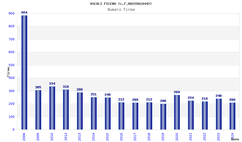 | Anno | Firme | Importi | Media | Naz. | Reg. | Prov. | Comu. |