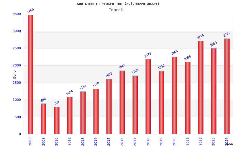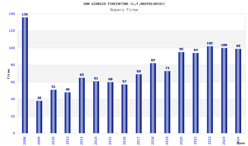 | Anno | Firme | Importi | Media | Naz. | Reg. | Prov. | Comu. |