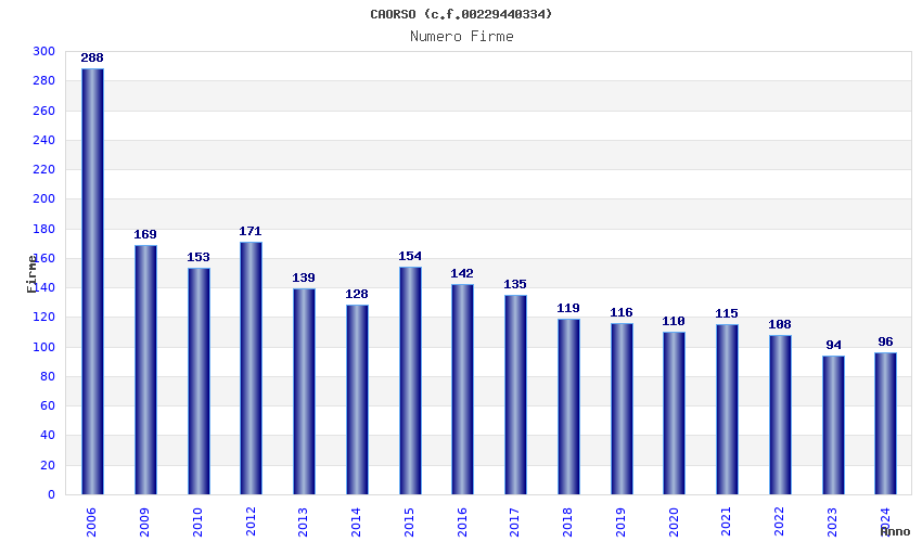 Anno Firme Importi Media Naz. Reg. Prov. Comu.