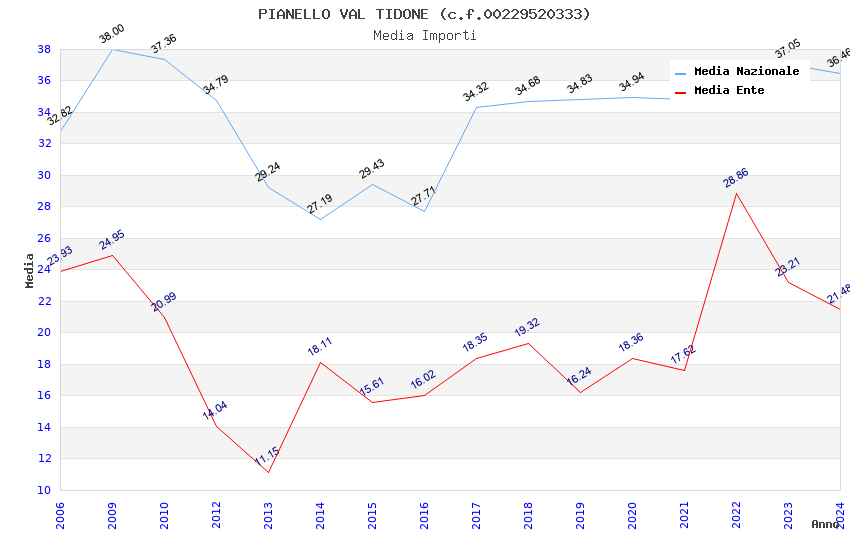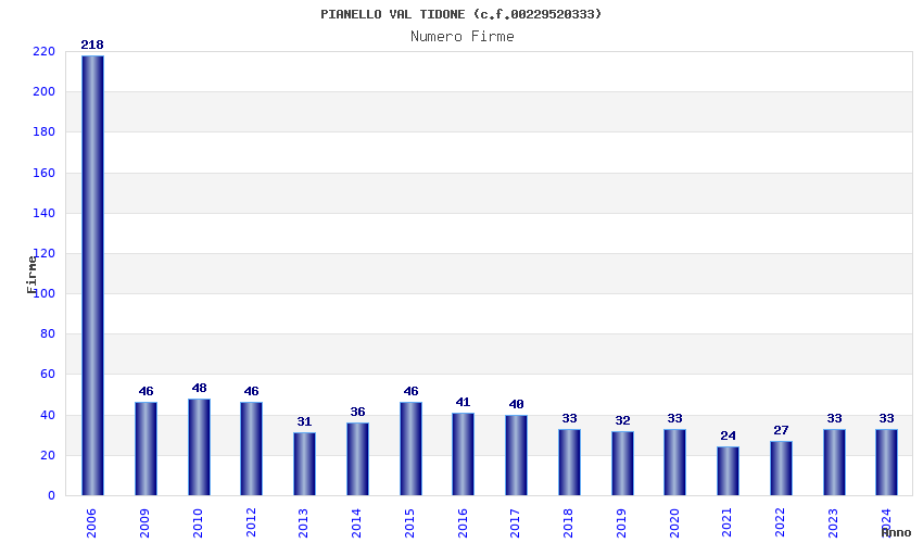 | Anno | Firme | Importi | Media | Naz. | Reg. | Prov. | Comu. |