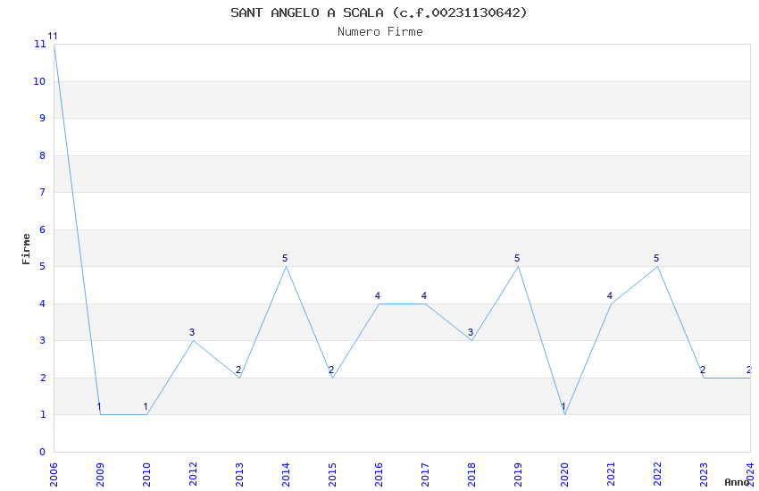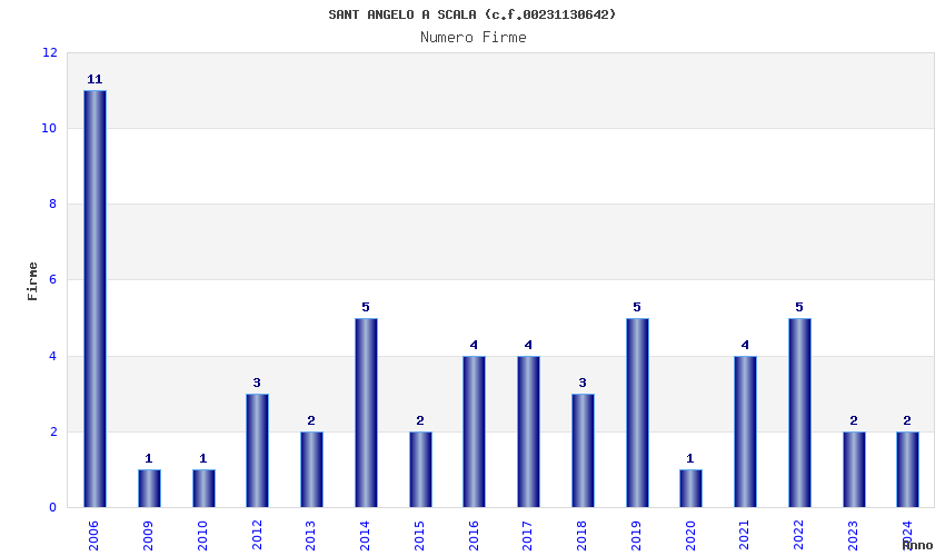 | Anno | Firme | Importi | Media | Naz. | Reg. | Prov. | Comu. |