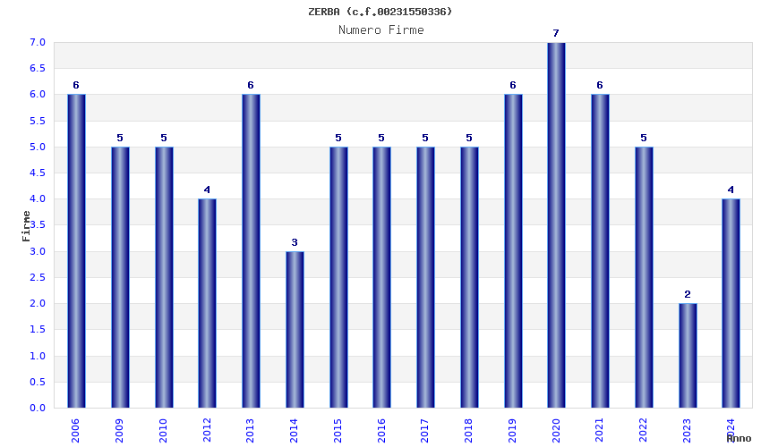 | Anno | Firme | Importi | Media | Naz. | Reg. | Prov. | Comu. |