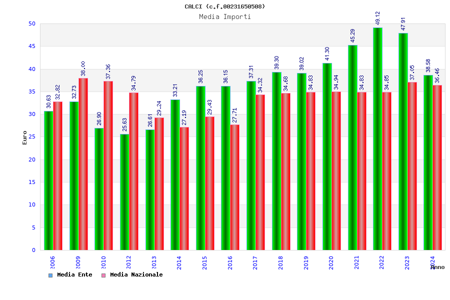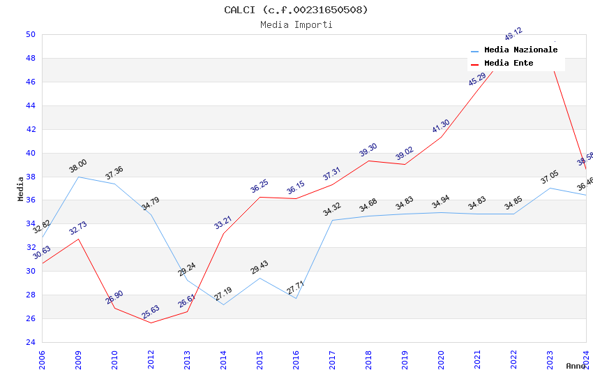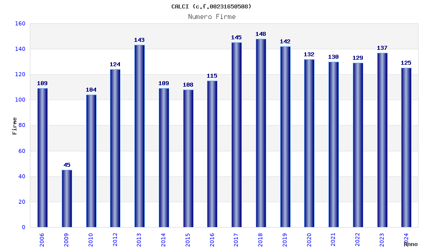 | Anno | Firme | Importi | Media | Naz. | Reg. | Prov. | Comu. |