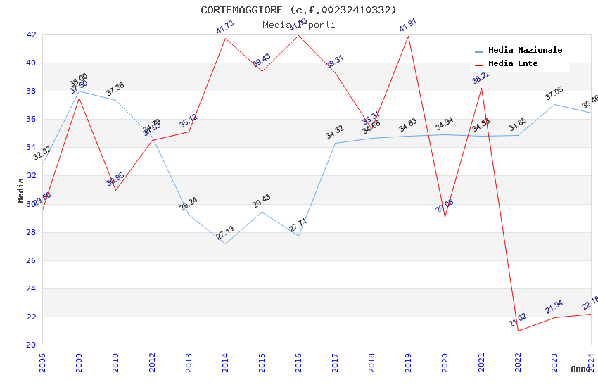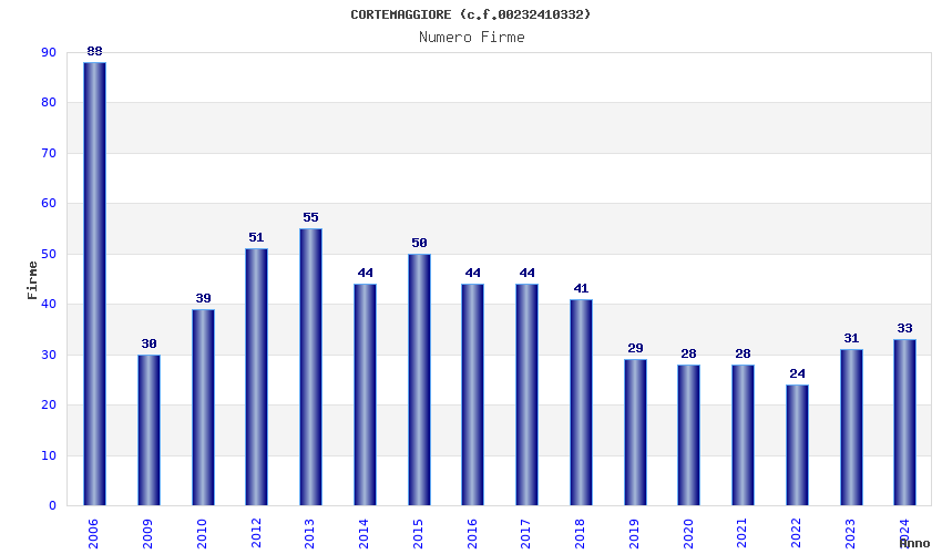 | Anno | Firme | Importi | Media | Naz. | Reg. | Prov. | Comu. |