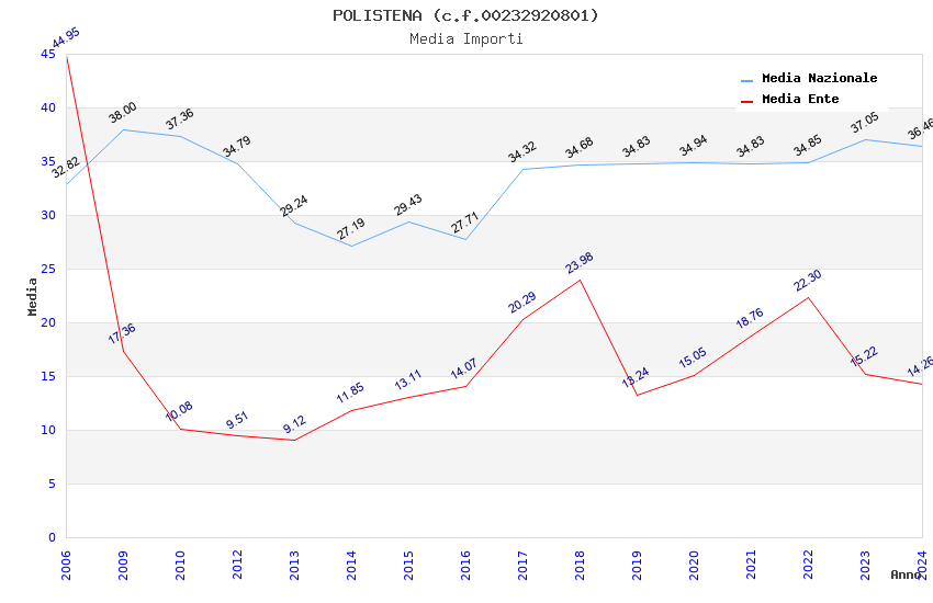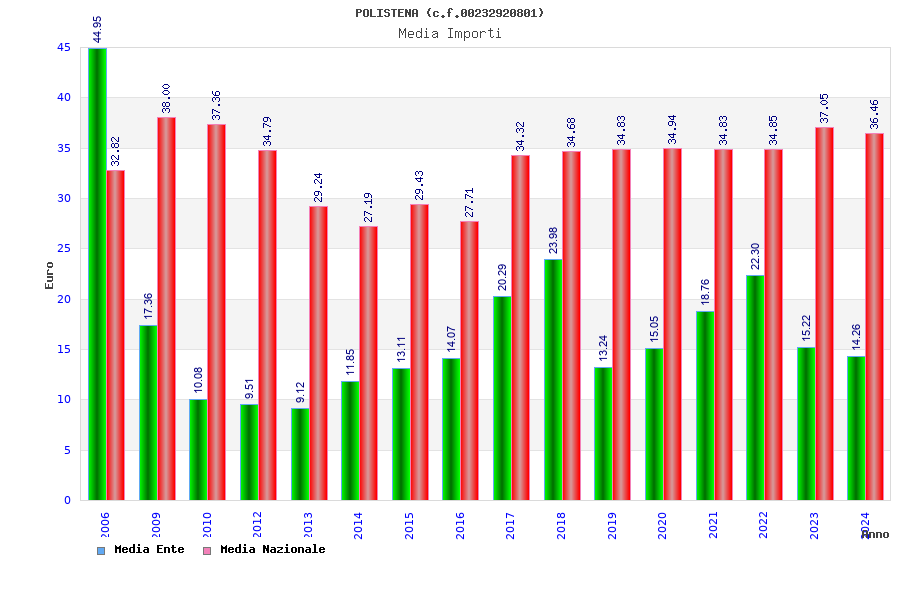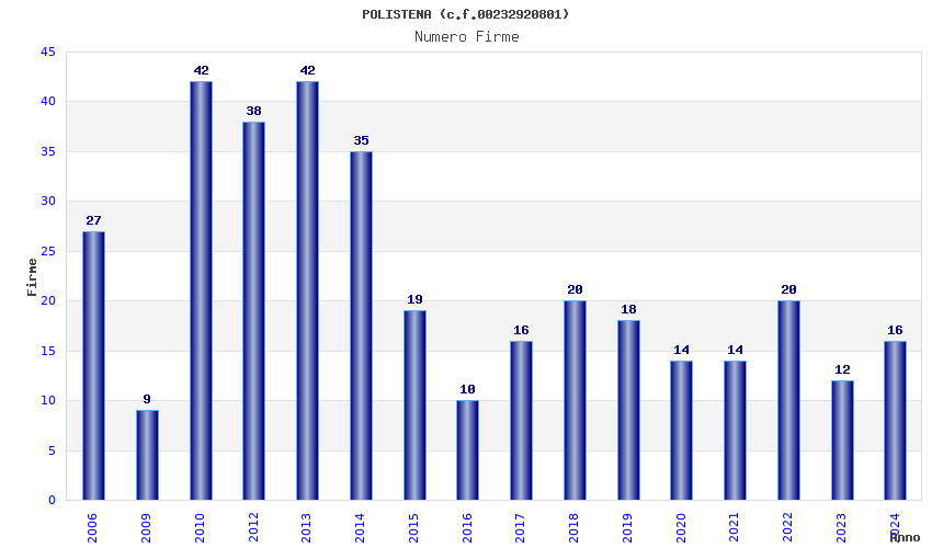 | Anno | Firme | Importi | Media | Naz. | Reg. | Prov. | Comu. |