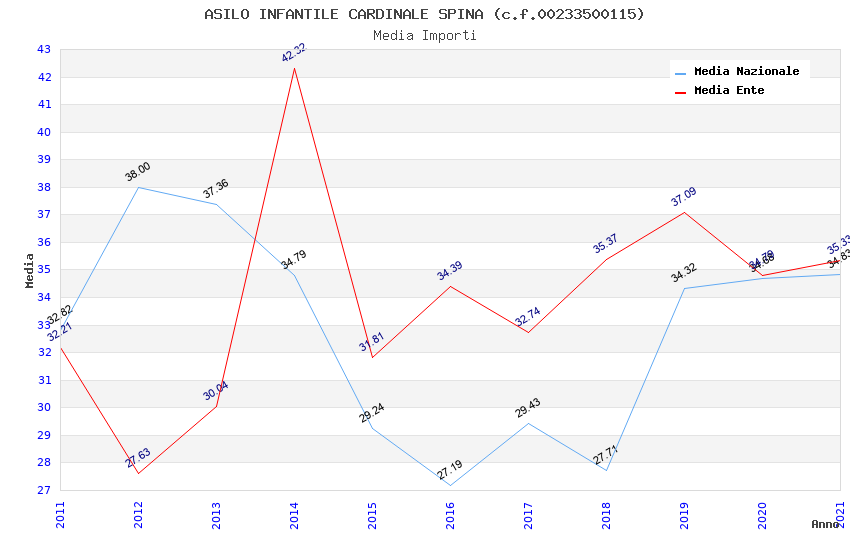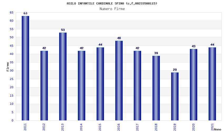 | Anno | Firme | Importi | Media | Naz. | Reg. | Prov. | Comu. |