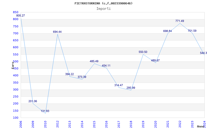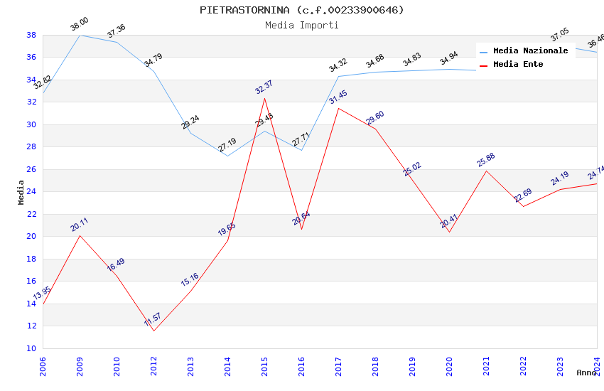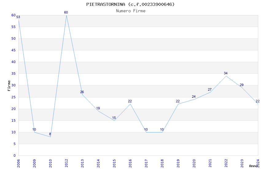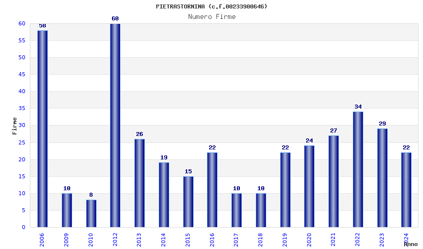 | Anno | Firme | Importi | Media | Naz. | Reg. | Prov. | Comu. |