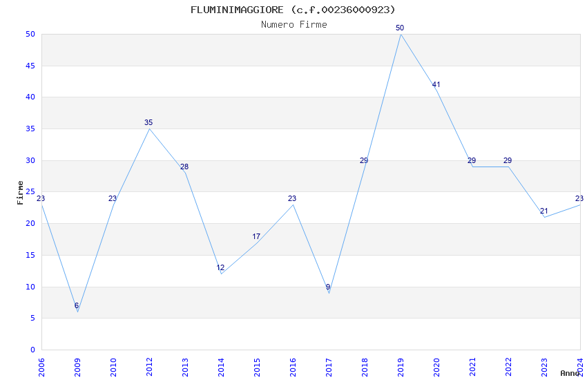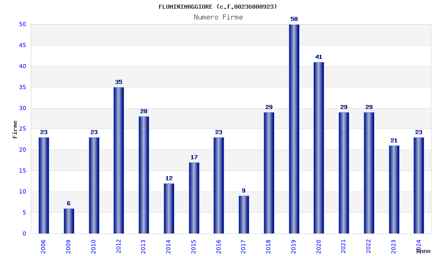 | Anno | Firme | Importi | Media | Naz. | Reg. | Prov. | Comu. |