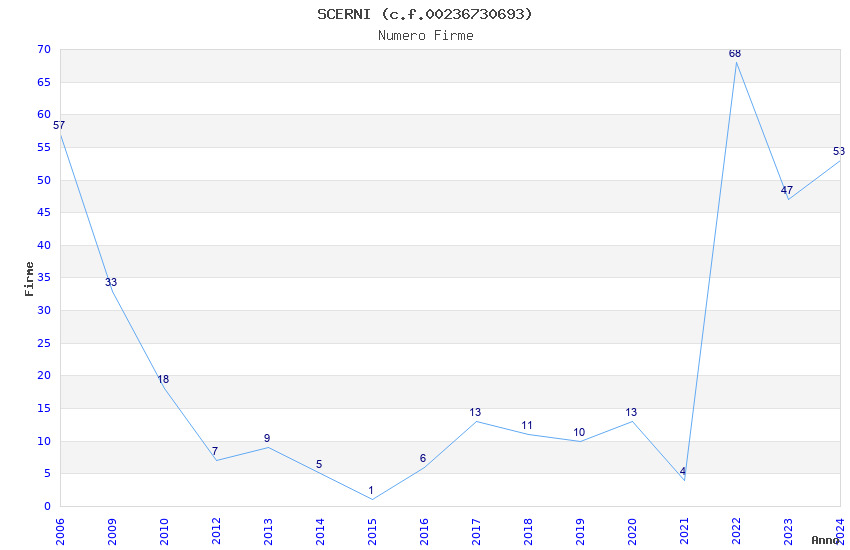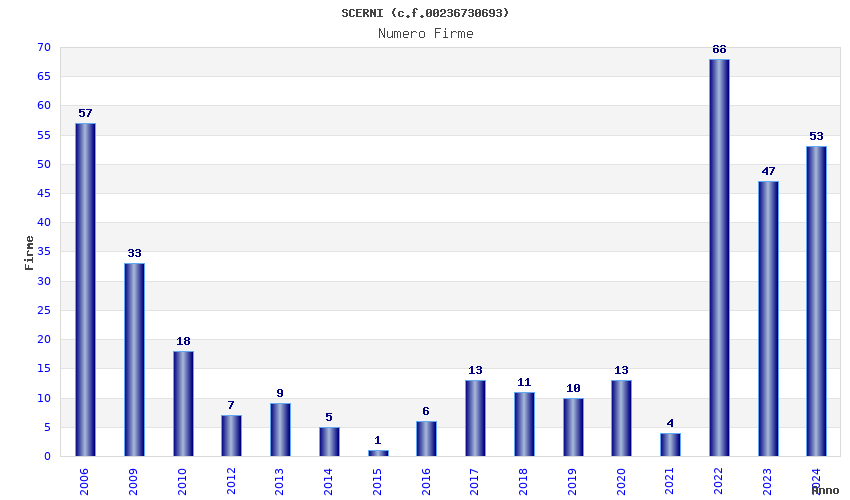 | Anno | Firme | Importi | Media | Naz. | Reg. | Prov. | Comu. |