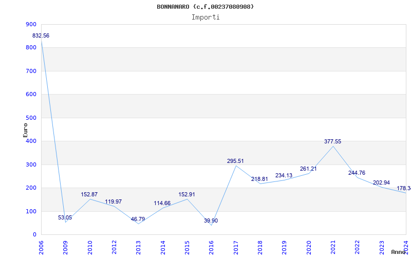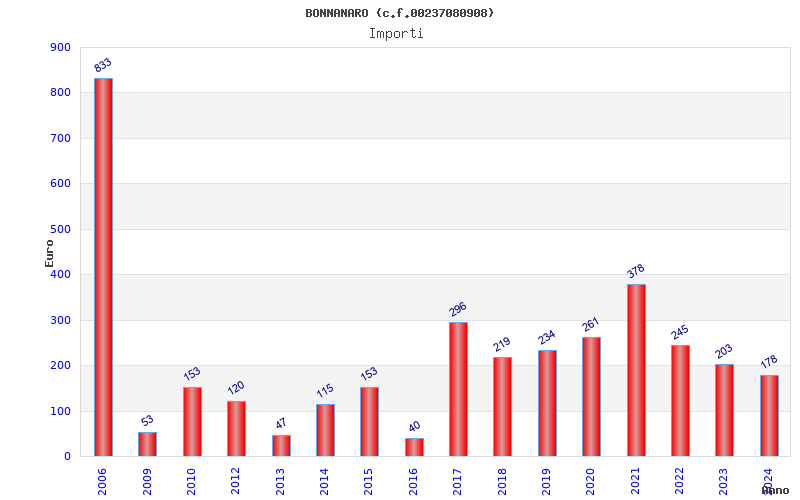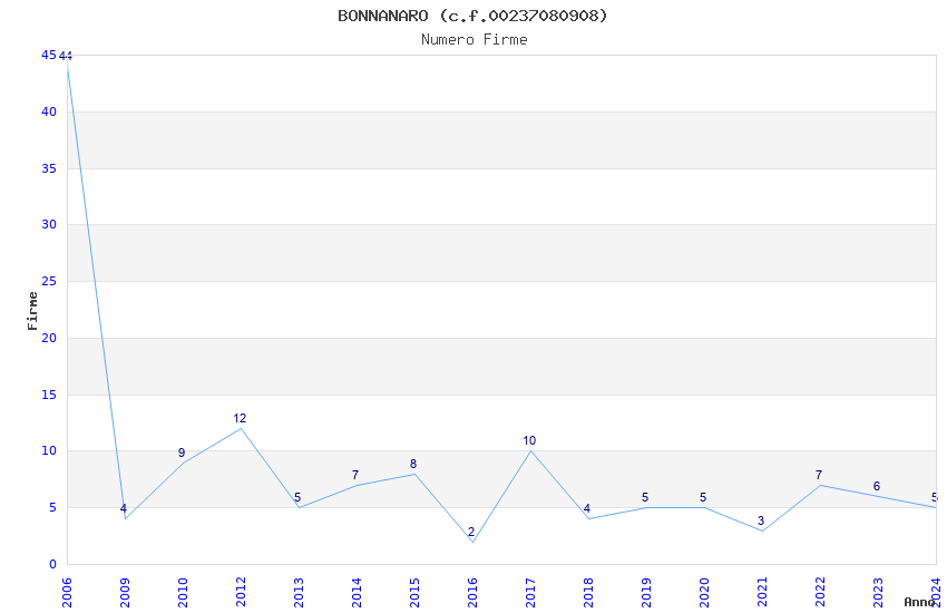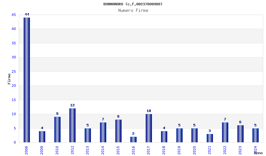 | Anno | Firme | Importi | Media | Naz. | Reg. | Prov. | Comu. |