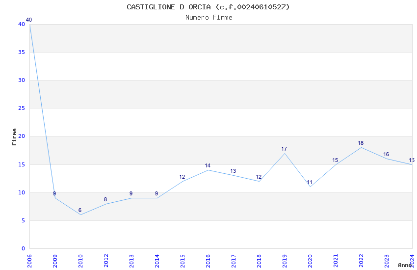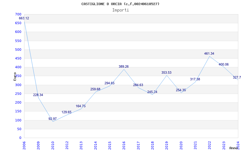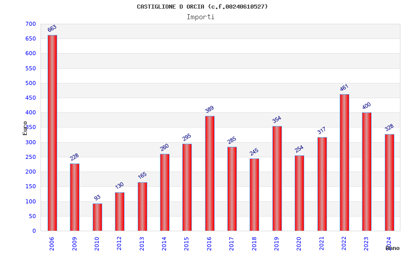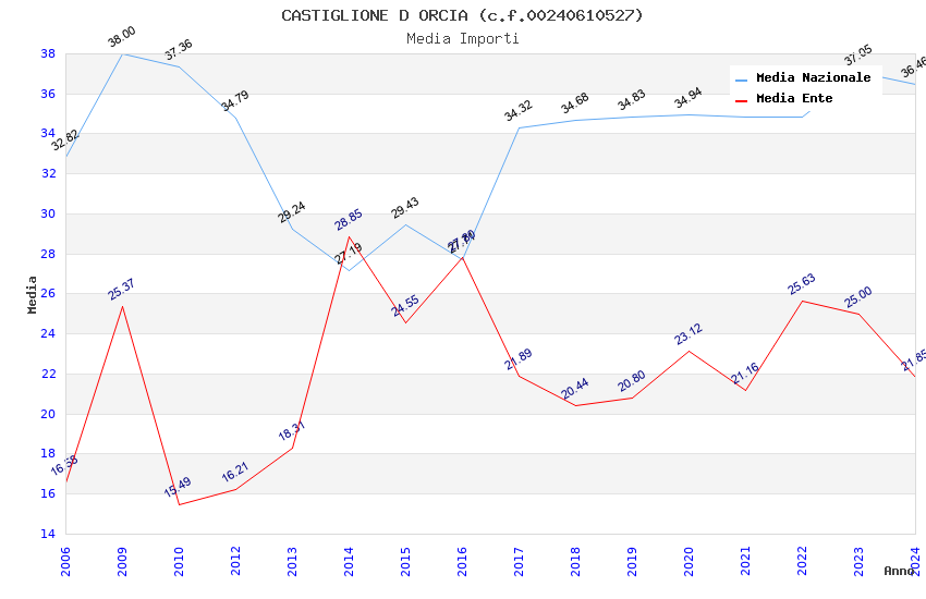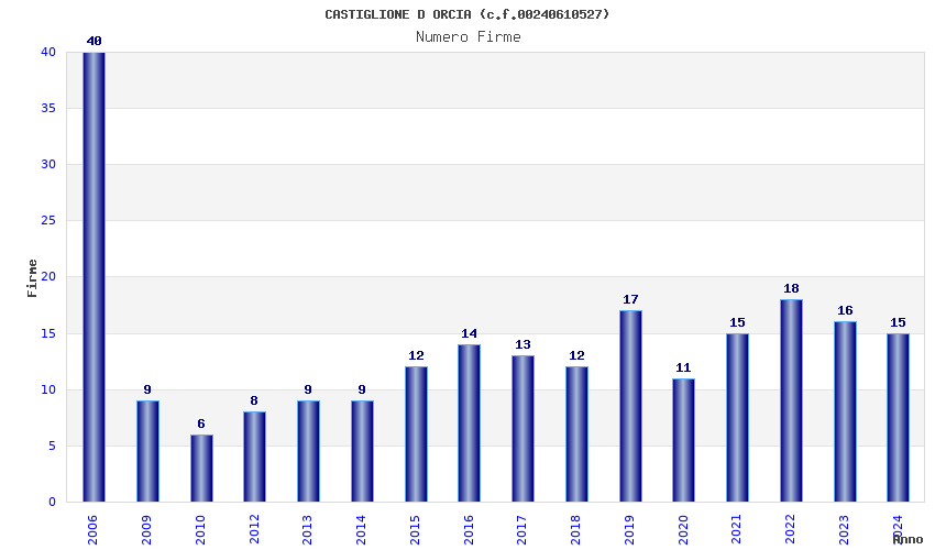 | Anno | Firme | Importi | Media | Naz. | Reg. | Prov. | Comu. |