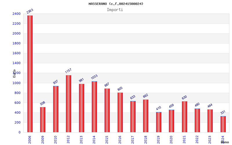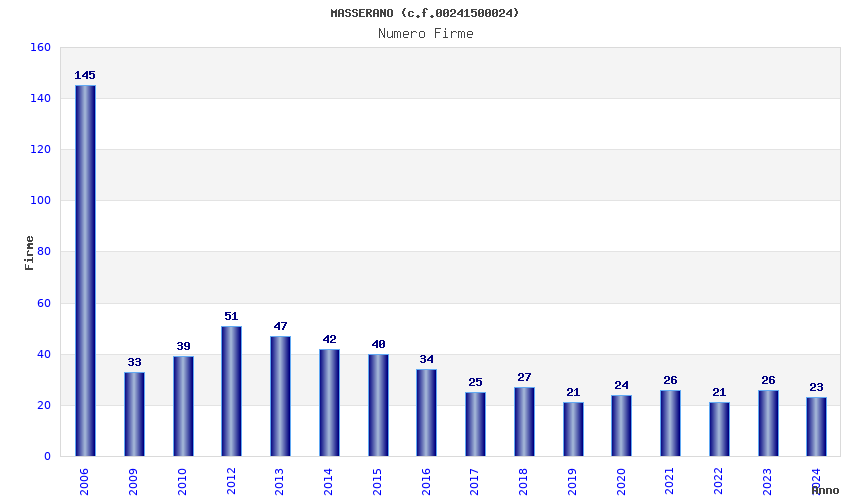 | Anno | Firme | Importi | Media | Naz. | Reg. | Prov. | Comu. |