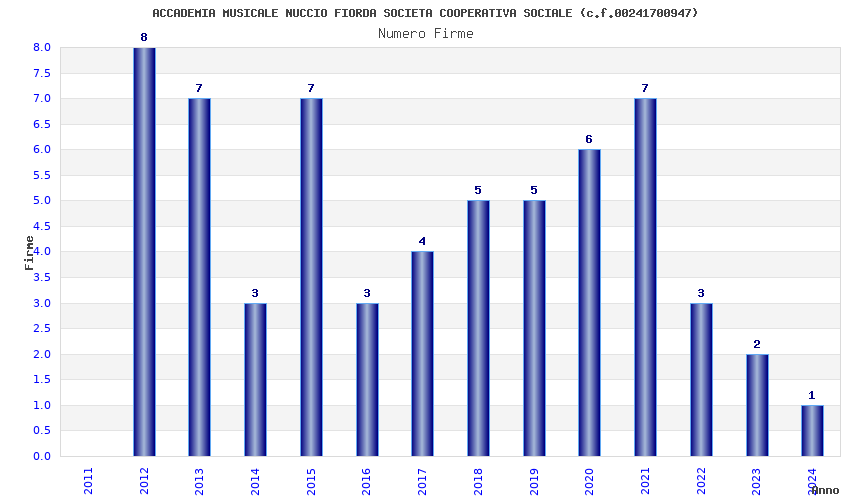 | Anno | Firme | Importi | Media | Naz. | Reg. | Prov. | Comu. |