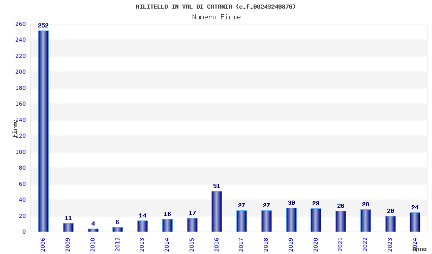 | Anno | Firme | Importi | Media | Naz. | Reg. | Prov. | Comu. |