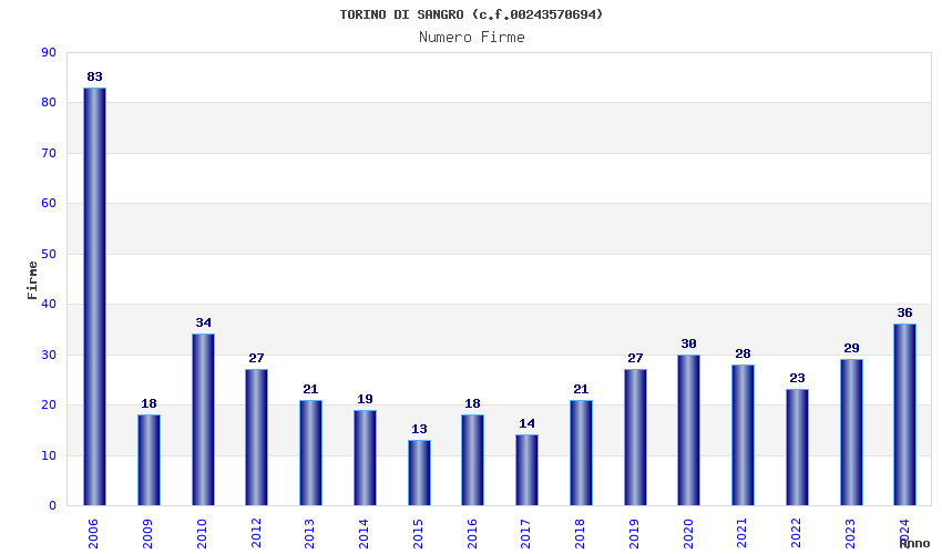 Anno Firme Importi Media Naz. Reg. Prov. Comu.