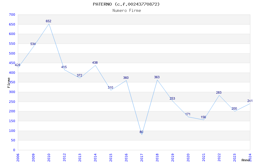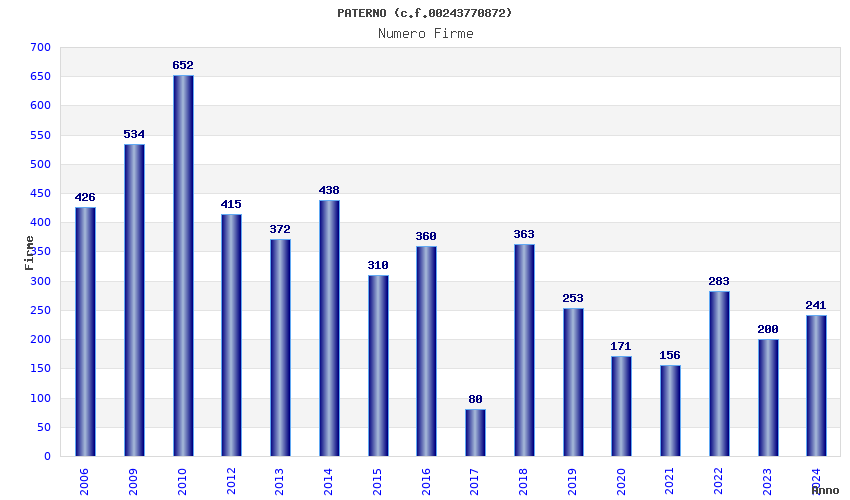 Anno Firme Importi Media Naz. Reg. Prov. Comu.