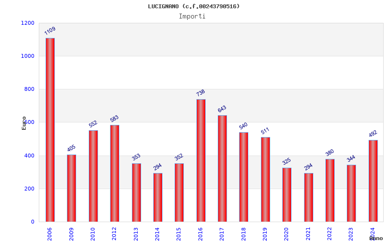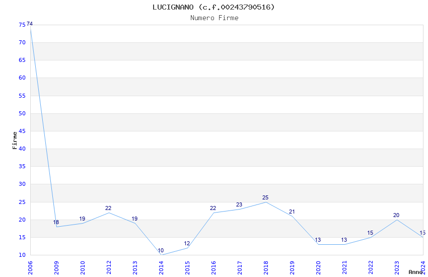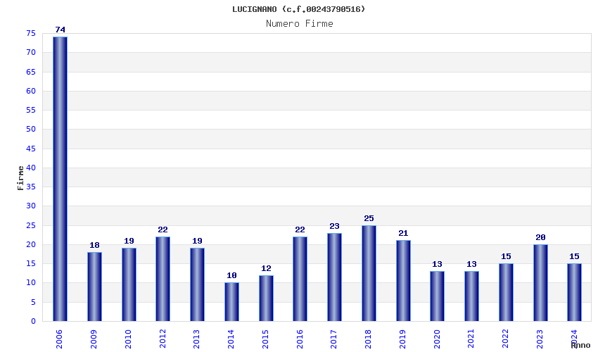 | Anno | Firme | Importi | Media | Naz. | Reg. | Prov. | Comu. |