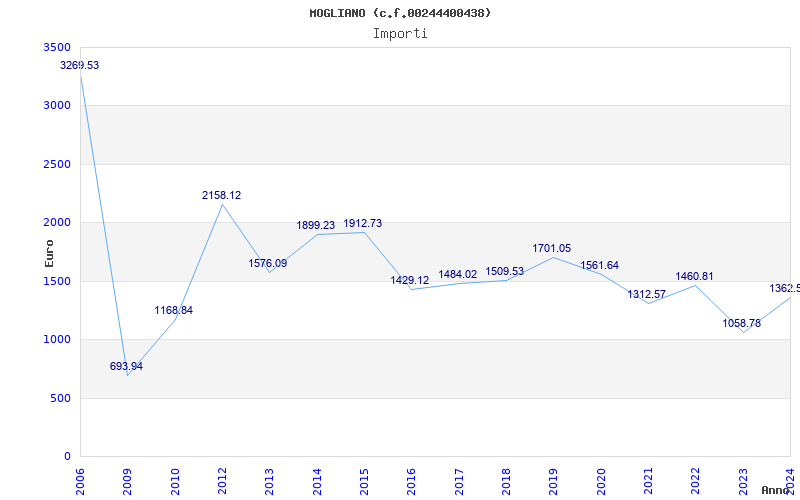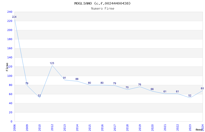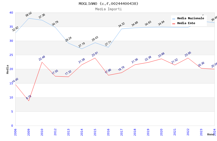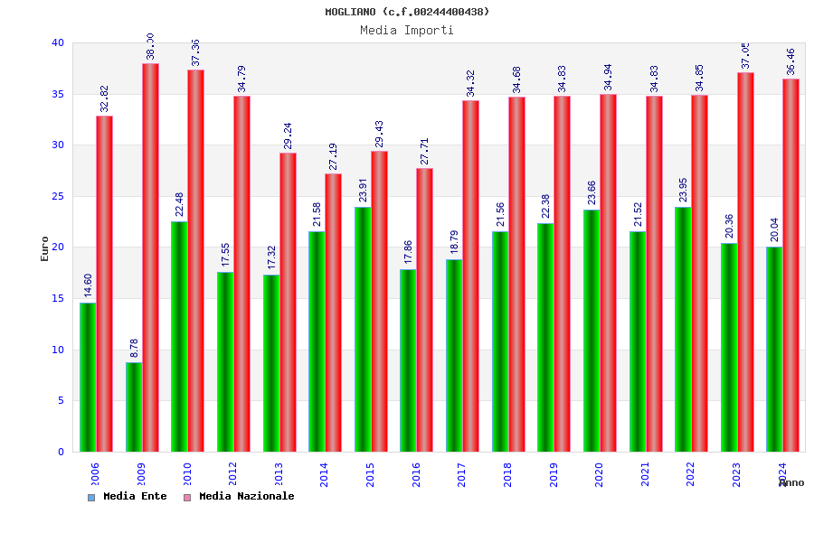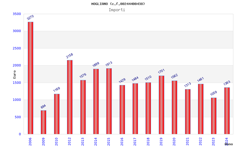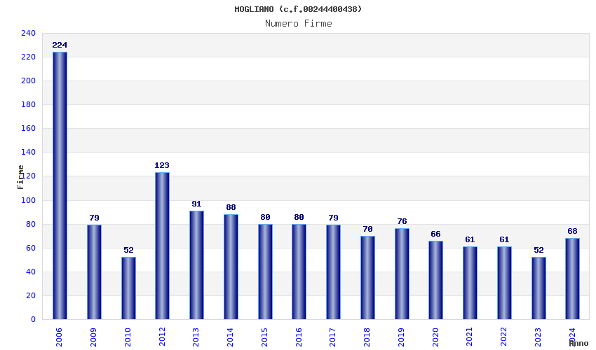 | Anno | Firme | Importi | Media | Naz. | Reg. | Prov. | Comu. |