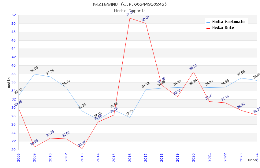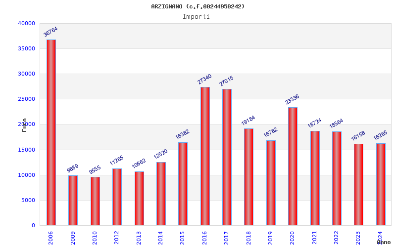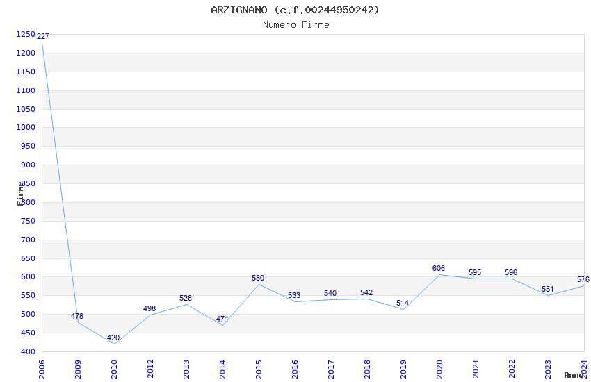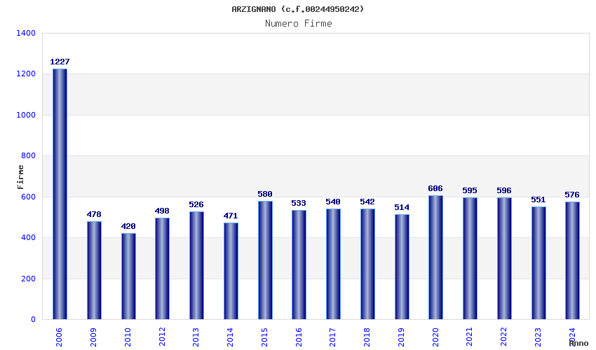 | Anno | Firme | Importi | Media | Naz. | Reg. | Prov. | Comu. |