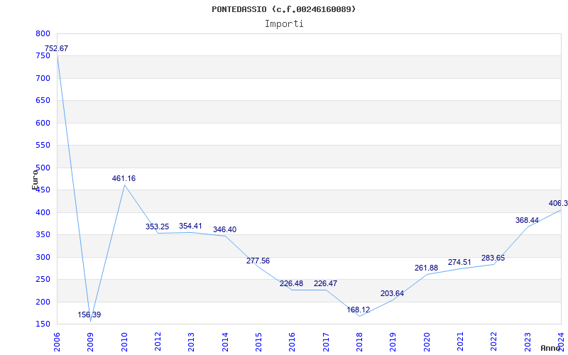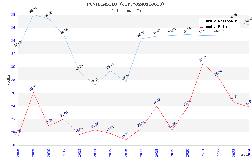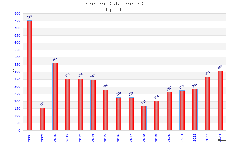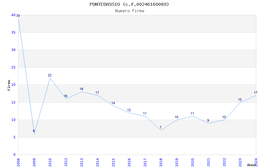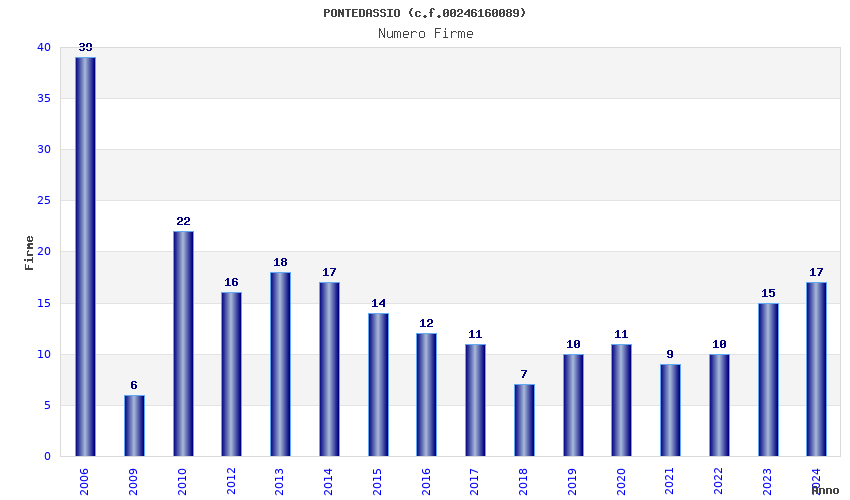 | Anno | Firme | Importi | Media | Naz. | Reg. | Prov. | Comu. |