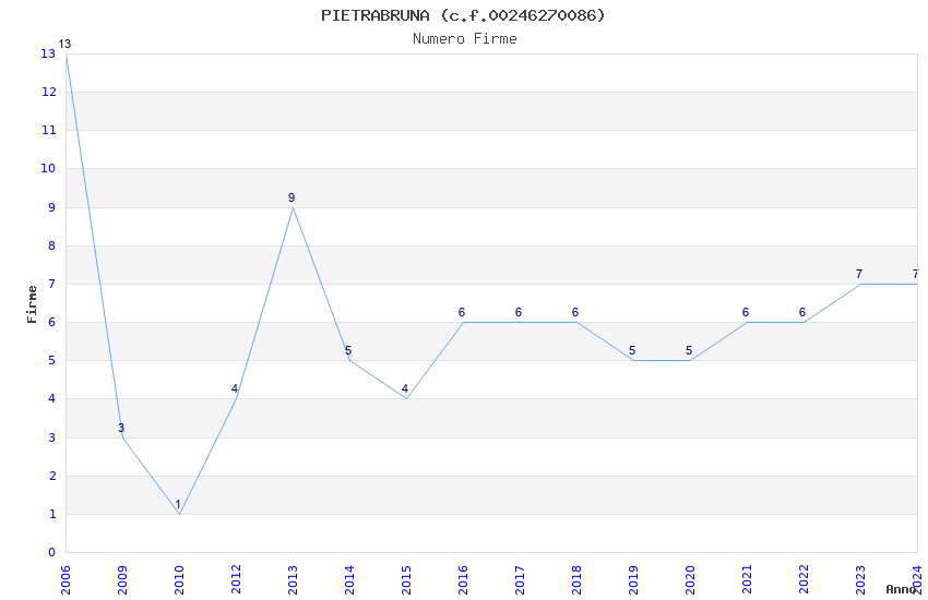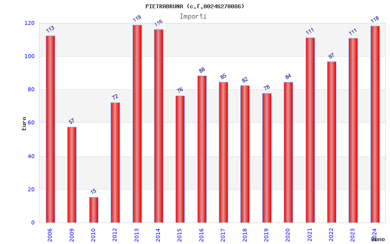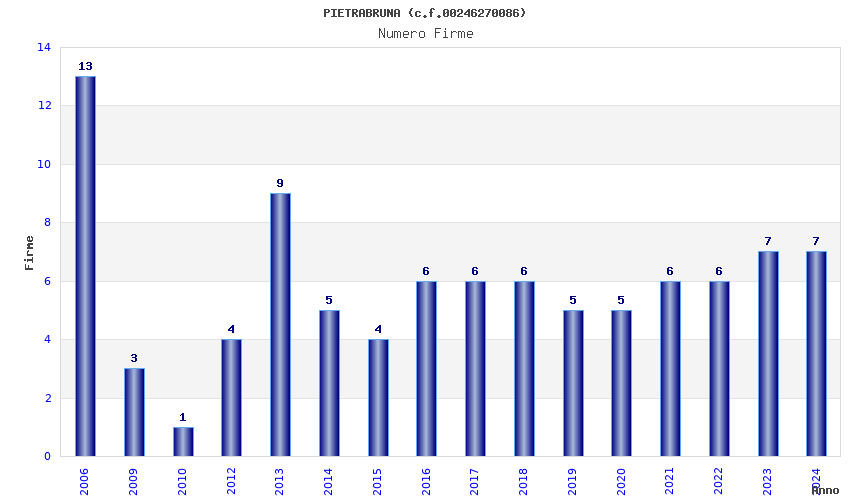 | Anno | Firme | Importi | Media | Naz. | Reg. | Prov. | Comu. |