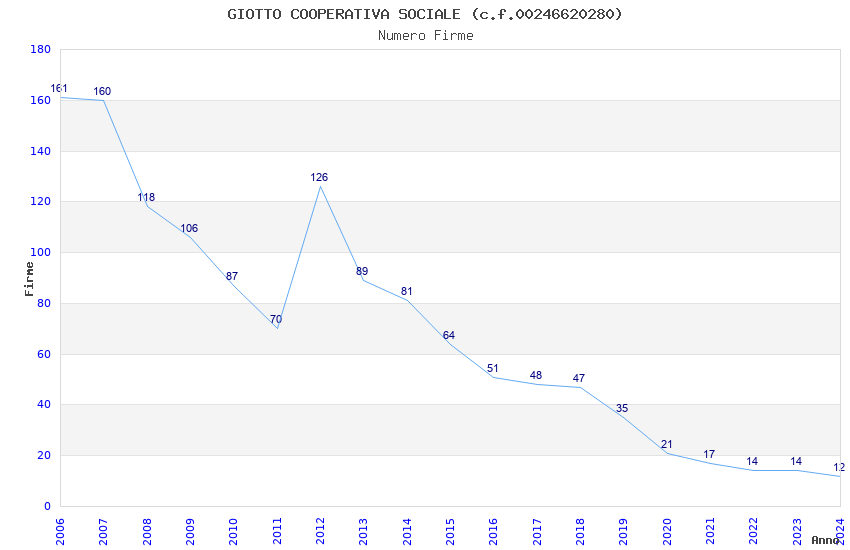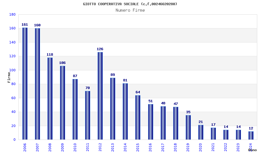 | Anno | Firme | Importi | Media | Naz. | Reg. | Prov. | Comu. |