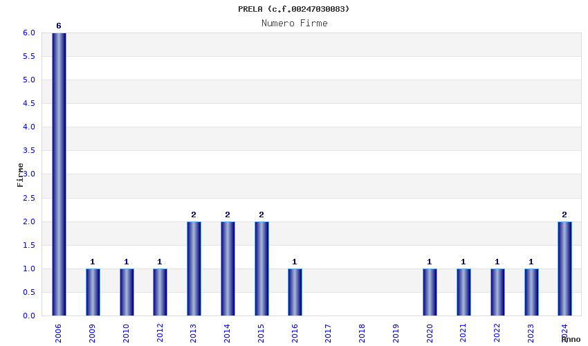 | Anno | Firme | Importi | Media | Naz. | Reg. | Prov. | Comu. |