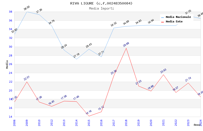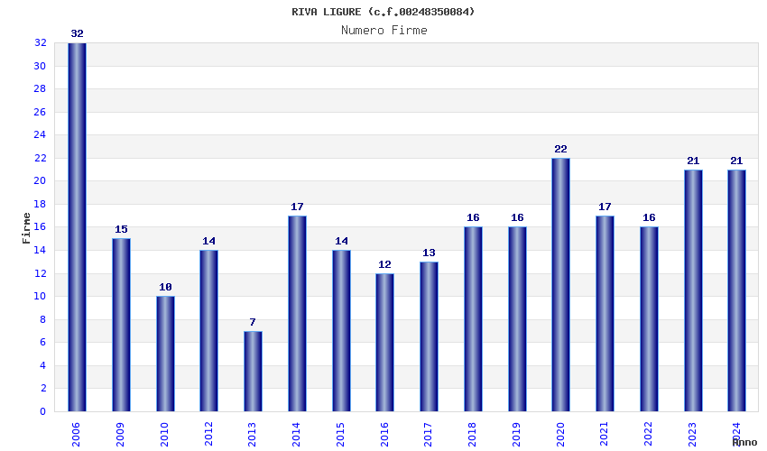 | Anno | Firme | Importi | Media | Naz. | Reg. | Prov. | Comu. |