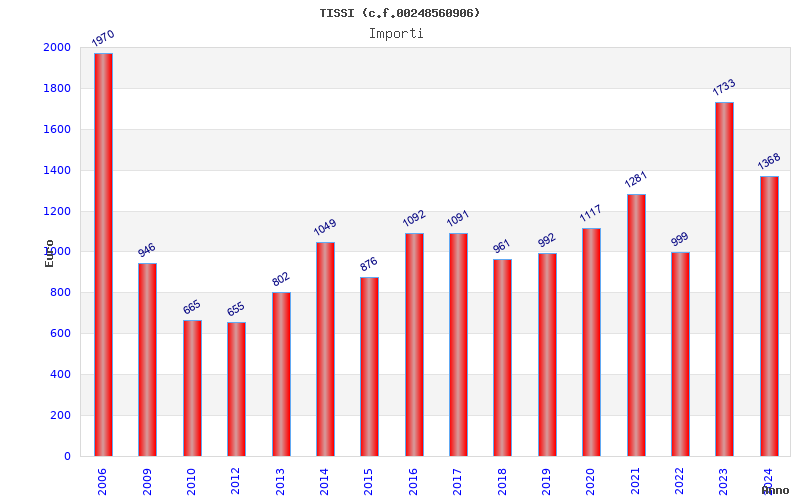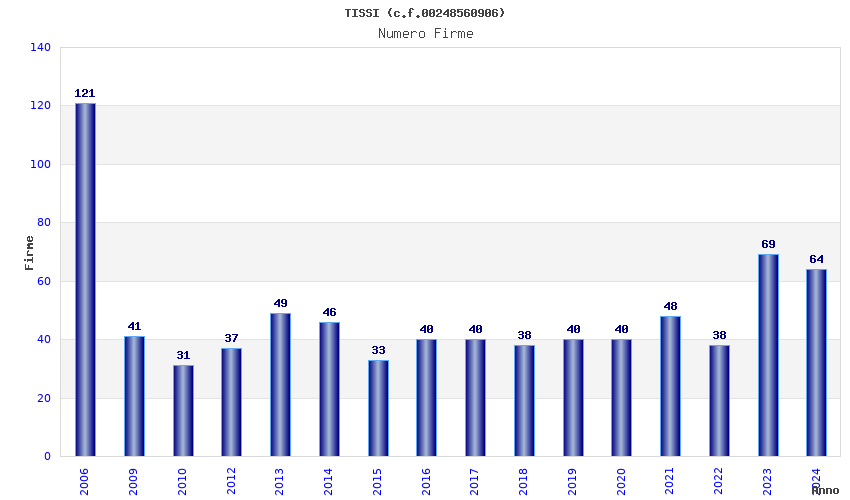 | Anno | Firme | Importi | Media | Naz. | Reg. | Prov. | Comu. |