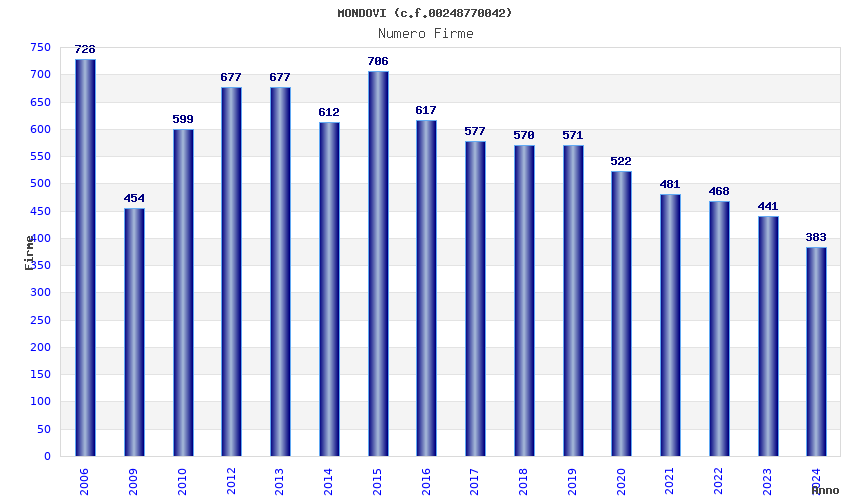 | Anno | Firme | Importi | Media | Naz. | Reg. | Prov. | Comu. |