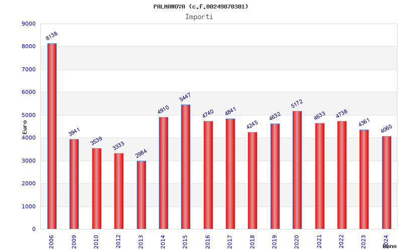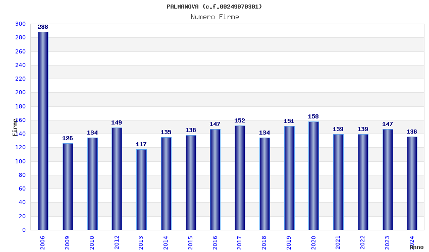| Anno | Firme | Importi | Media | Naz. | Reg. | Prov. | Comu. |