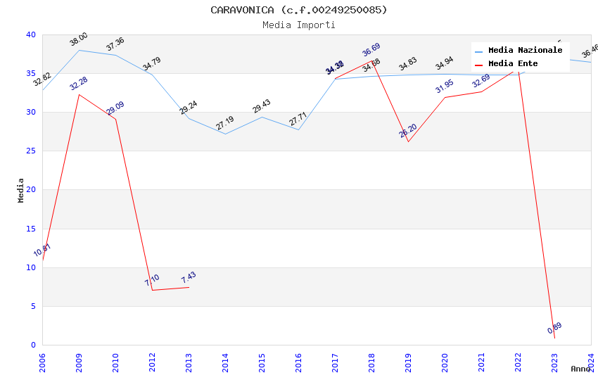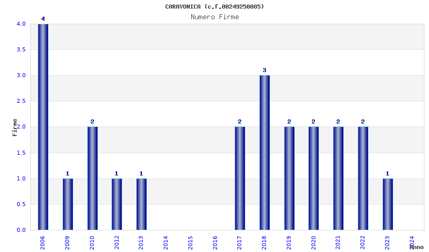 | Anno | Firme | Importi | Media | Naz. | Reg. | Prov. | Comu. |
