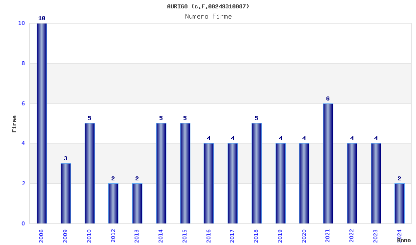 Anno Firme Importi Media Naz. Reg. Prov. Comu.