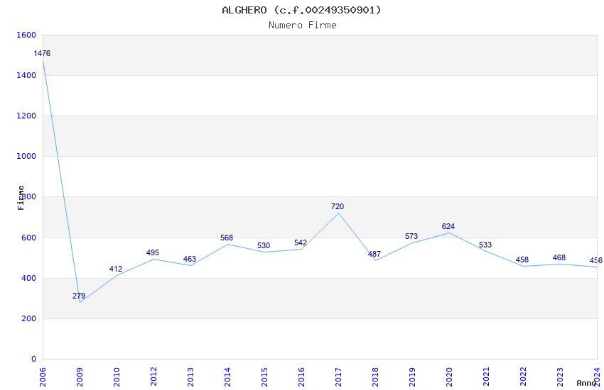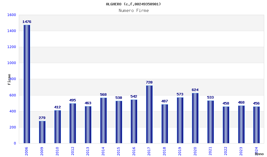 | Anno | Firme | Importi | Media | Naz. | Reg. | Prov. | Comu. |