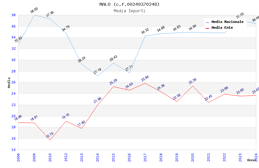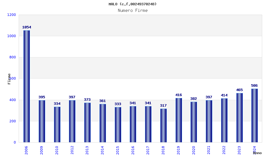 | Anno | Firme | Importi | Media | Naz. | Reg. | Prov. | Comu. |