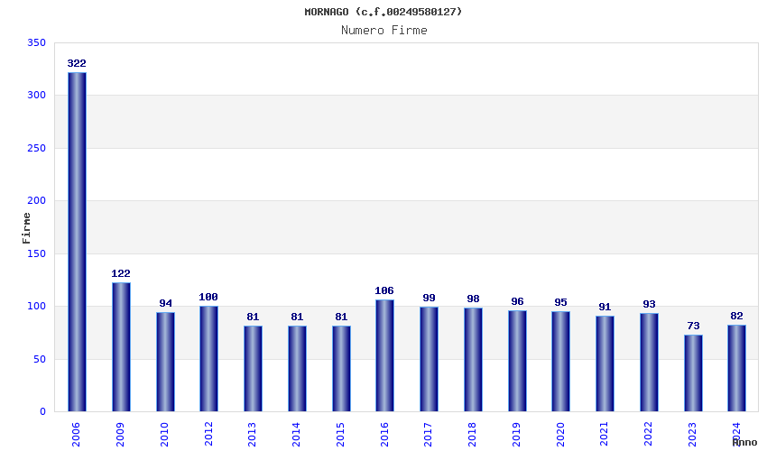 | Anno | Firme | Importi | Media | Naz. | Reg. | Prov. | Comu. |