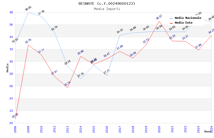 | Anno | Firme | Importi | Media | Naz. | Reg. | Prov. | Comu. |