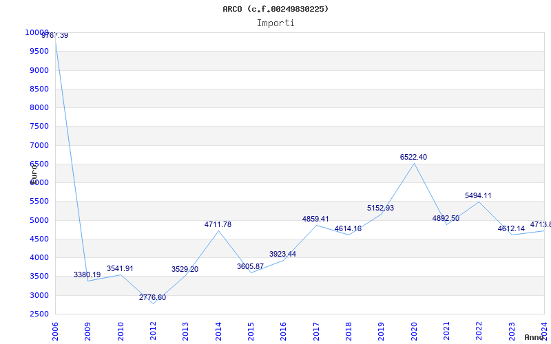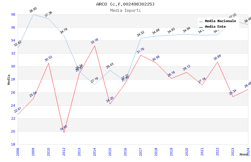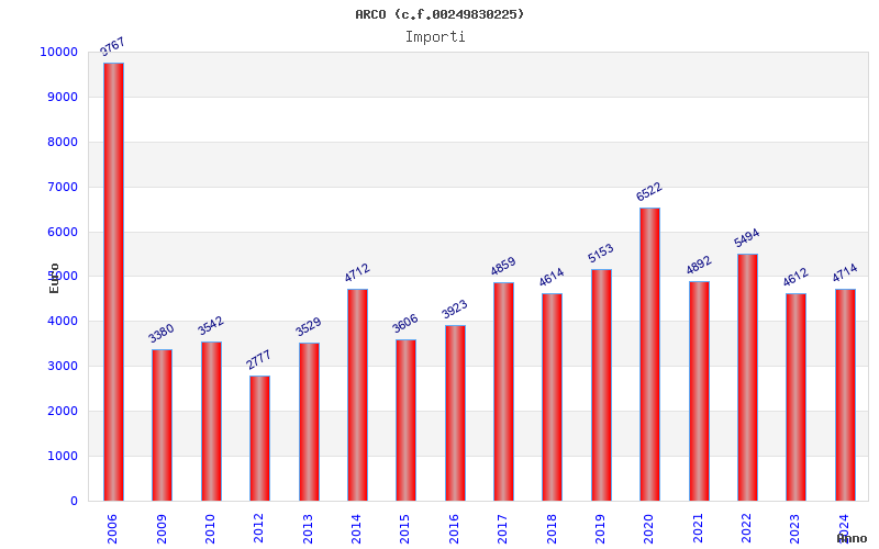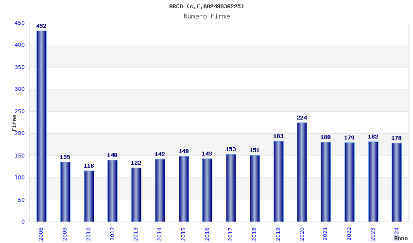 | Anno | Firme | Importi | Media | Naz. | Reg. | Prov. | Comu. |