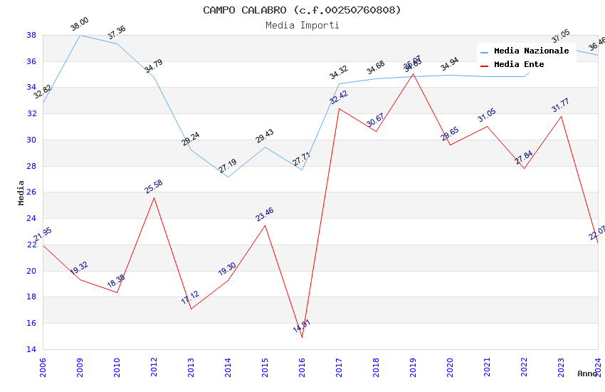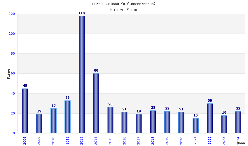 | Anno | Firme | Importi | Media | Naz. | Reg. | Prov. | Comu. |